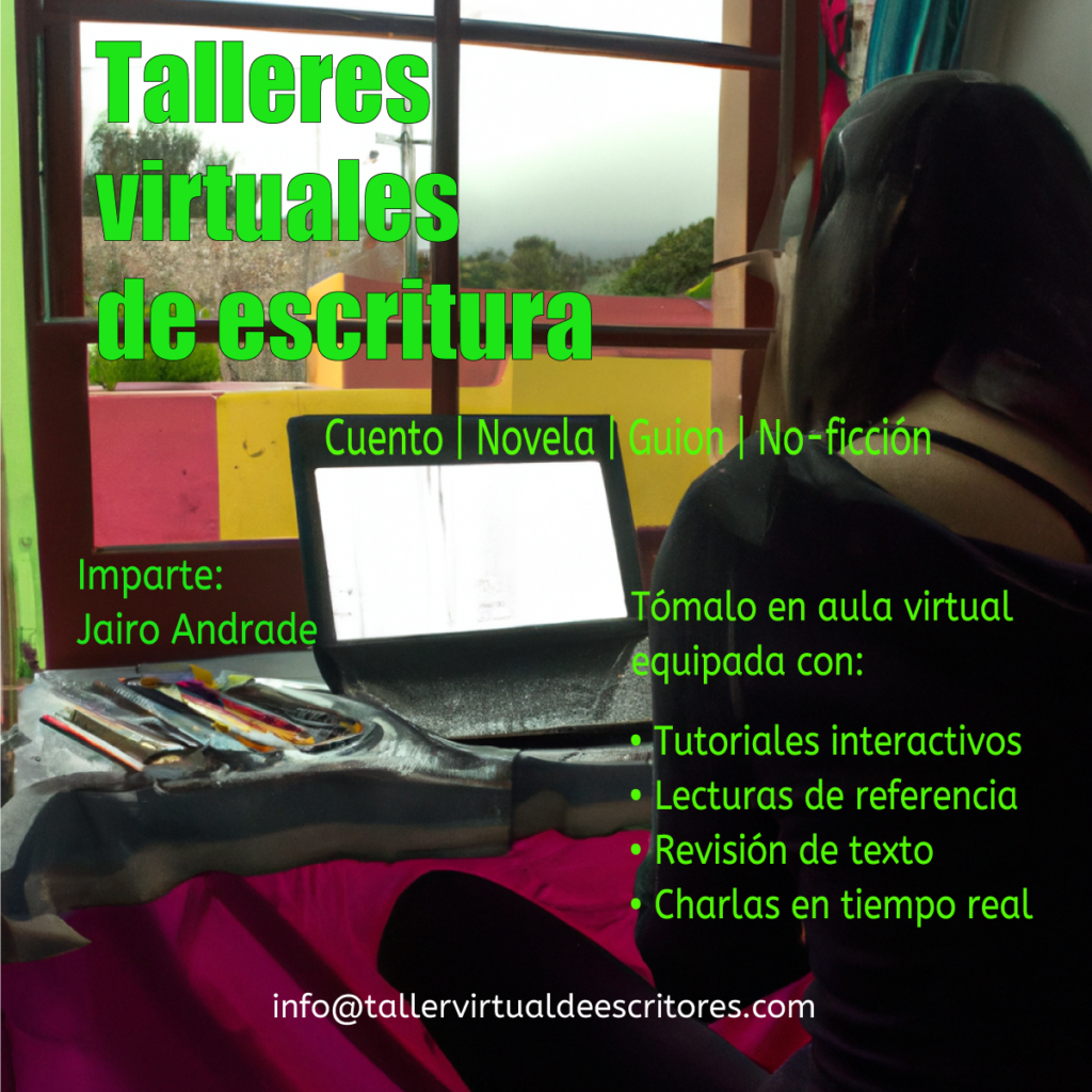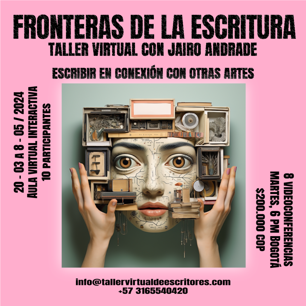 Propiciar diálogos creativos sobre la literatura y sus horizontes conceptuales hace parte esencial de mi manera de entender el arte de escribir. Mediante los talleres no sólo comparto mi experiencia de vivir bajo el cobijo de la ficción, sino también mis visiones sobre los horizontes que presenta, con particular interés en las literaturas digitales, propósito en el que ha sido pieza clave el equipo de trabajo y la plataforma web del Taller Virtual de Escritores. Actualmente experimento con migraciones digitales de la literatura hacia la hiperficción y la creación de performances literarias con uso de mapeo cerebral.